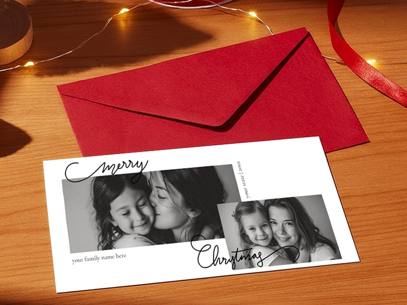 We offer custom-printed, double-sided flat holiday cards that you can fully personalize with your own design, photos, and text.
