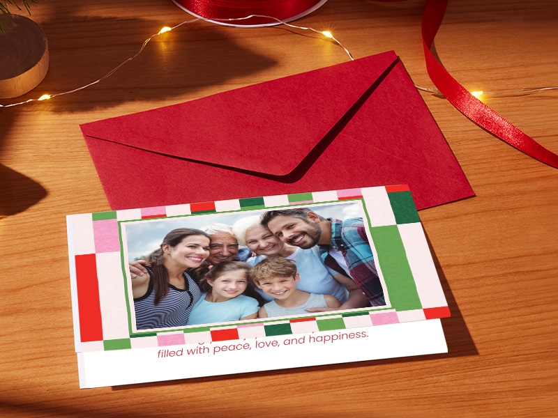 Quickly upload your images, add custom text, and choose from flat or folded designs. Personalize the front, back, and interior panels of folded cards to create polished holiday greetings for family, friends, clients, or employees.