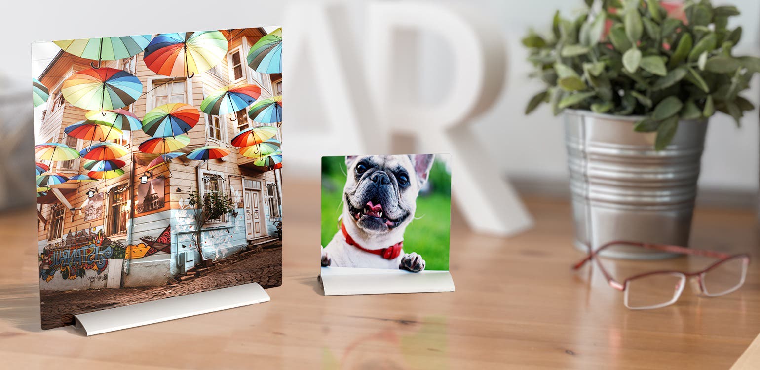 Bring your photos to life with stunning high-resolution metal prints designed for tabletop display. The sleek and modern aluminum finish adds a touch of elegance, making every cherished memory shine. Enjoy exceptional print quality with a stylish stand for effortless display.